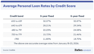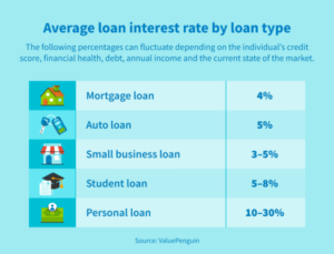 Typical personal loan interest rate ranges include: